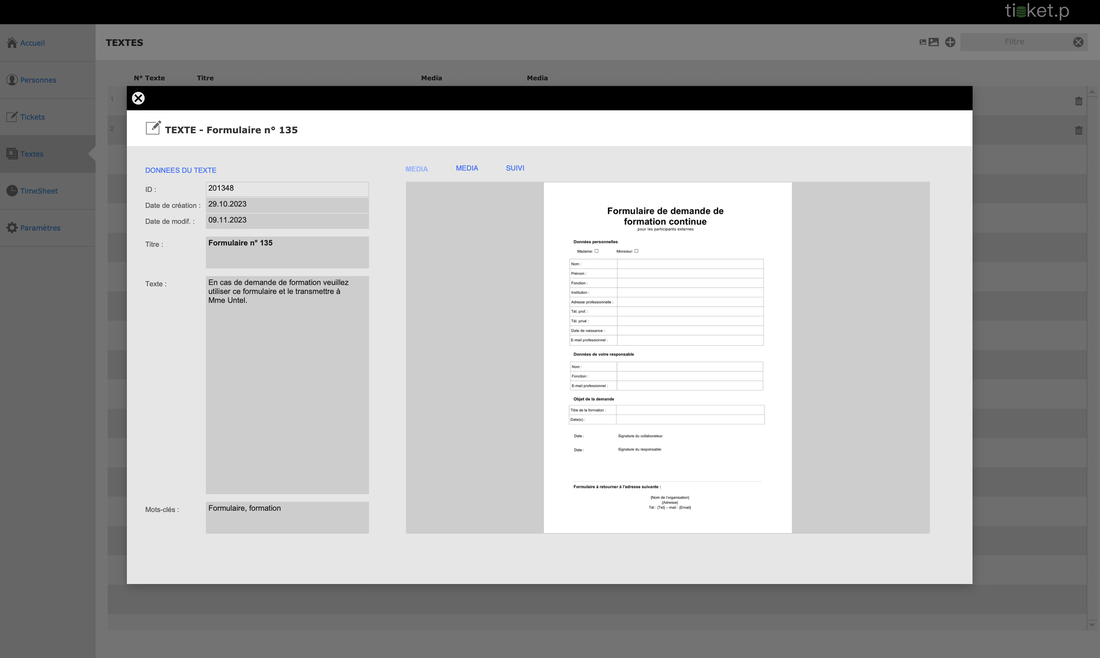 Ticketp est une solution Pconcept qui peut être utilisée en local sur son bureau ou en partage dans un server.